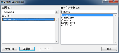 - MS Word 2007 的 “同近义辞典”(Thesaurus)