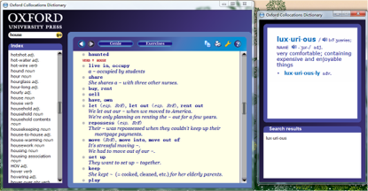 Oxford Collocation Dictionary for Students of English 是一本具有划时代意义的词典。Oxford Phrasebuilder Genie 这个软件包含两个重要的词典,一个是《牛津高级词典》(Oxford Advanced Learner's Dictionary),另外一个则是目前几乎找不到任何其它替代的这本《牛津搭配词典》(Oxford Collocation Dictionary for Students of English)—— 国内的书店里,我只在北京王府井外文书店的四楼看到过有卖这部词典的原版(大约 380 元人民币,含印刷版与 CDROM;另外,一楼有卖 “影印版”,很便宜,几十块钱而已)。2009 年,这本伟大的词典终于出了第二版: