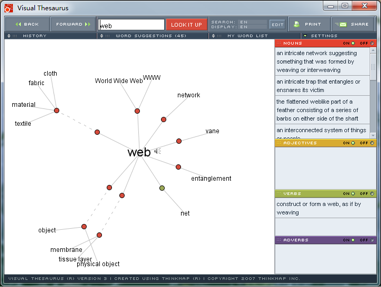 网上还能找到一个操作界面非常酷、非常炫的 “Thinkmap® Visual Thesaurus”,也是基于 WordNet 数据库的。